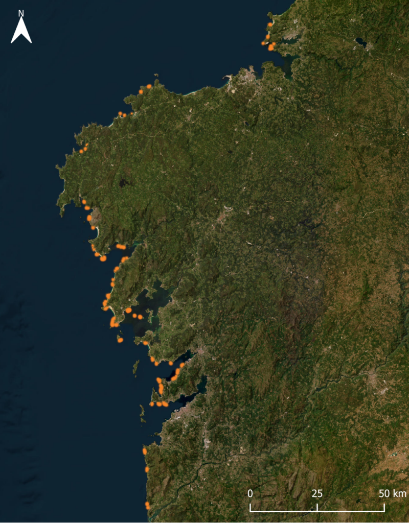 Ademais de obter unha fotografía da distribución do recurso na costa galega (desde A Guarda ata a Ría de Cedeira) a través do esforzo de mostraxe realizado en 2023 e 2024, desde APROMEX buscouse continuar coas avaliacións do recurso mediante mostraxes máis sostibles no tempo, sen a necesidade de realizar un esforzo tan intensivo cada ano. Por este motivo, establecéronse unha serie zonas de interese para o recurso, nas que realizar un seguimento continuado. Estas zonas representan diferentes localizacións con presenza de mexilla, seleccionadas a partir da información obtida durante as mostraxes para a avaliación do estado do recurso pero tamén grazas ás achegas do sector, que sinalou as súas áreas habituais de interese para a extracción.